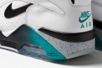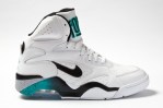 This model features a white upper with turquoise,with black, and grey accents. But unlike the Original model Nike has opted not to add the pump. Look for the Nike Air Force 180 High to drop later this year.