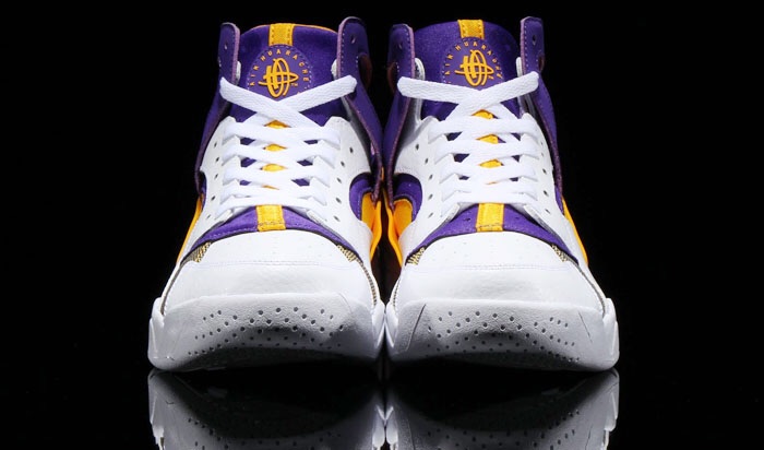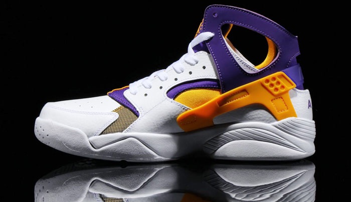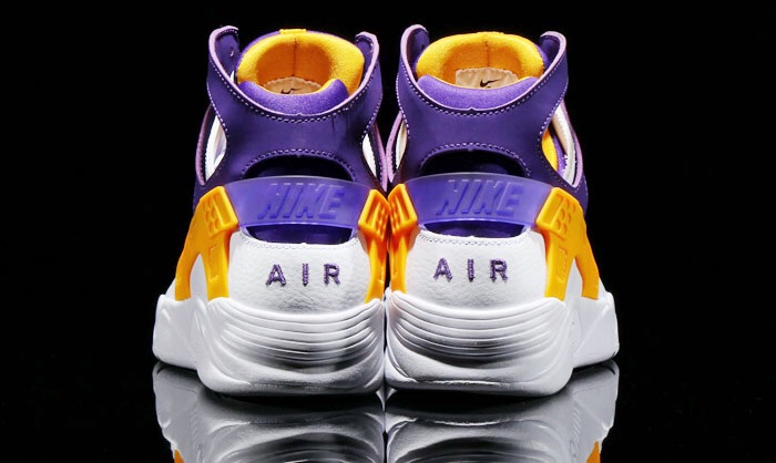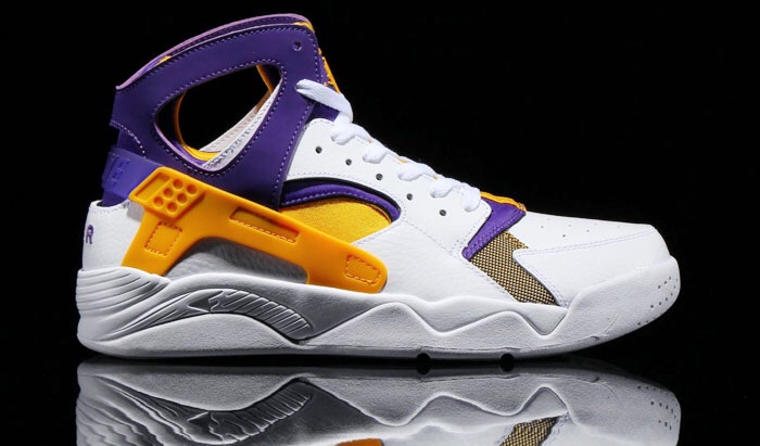 The new color for the Nike Hauraches features a L.A. lakers color way that is currently available at select Nike sportswear retailers.