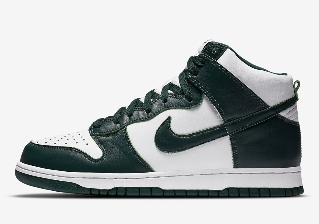 Nike Basketball will be dropping the classic dunk in “Spartan Green” this week on the 18th. The kicks will retail for $120.00 dollars and they take us back to the early 80’s and pay homage to the team Magic put on the map in the late 70’s. These are a must have for the collection don’t sleep these will sell out fast!!