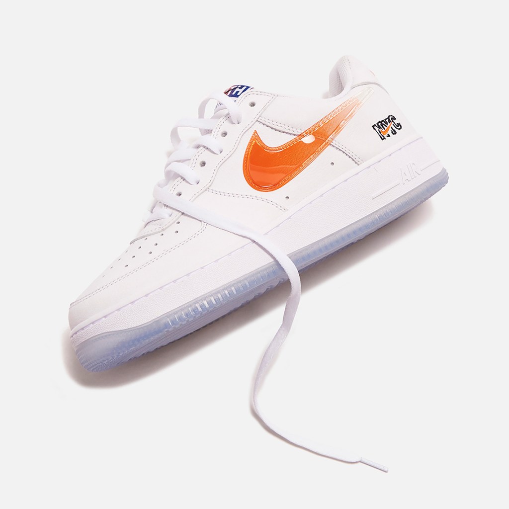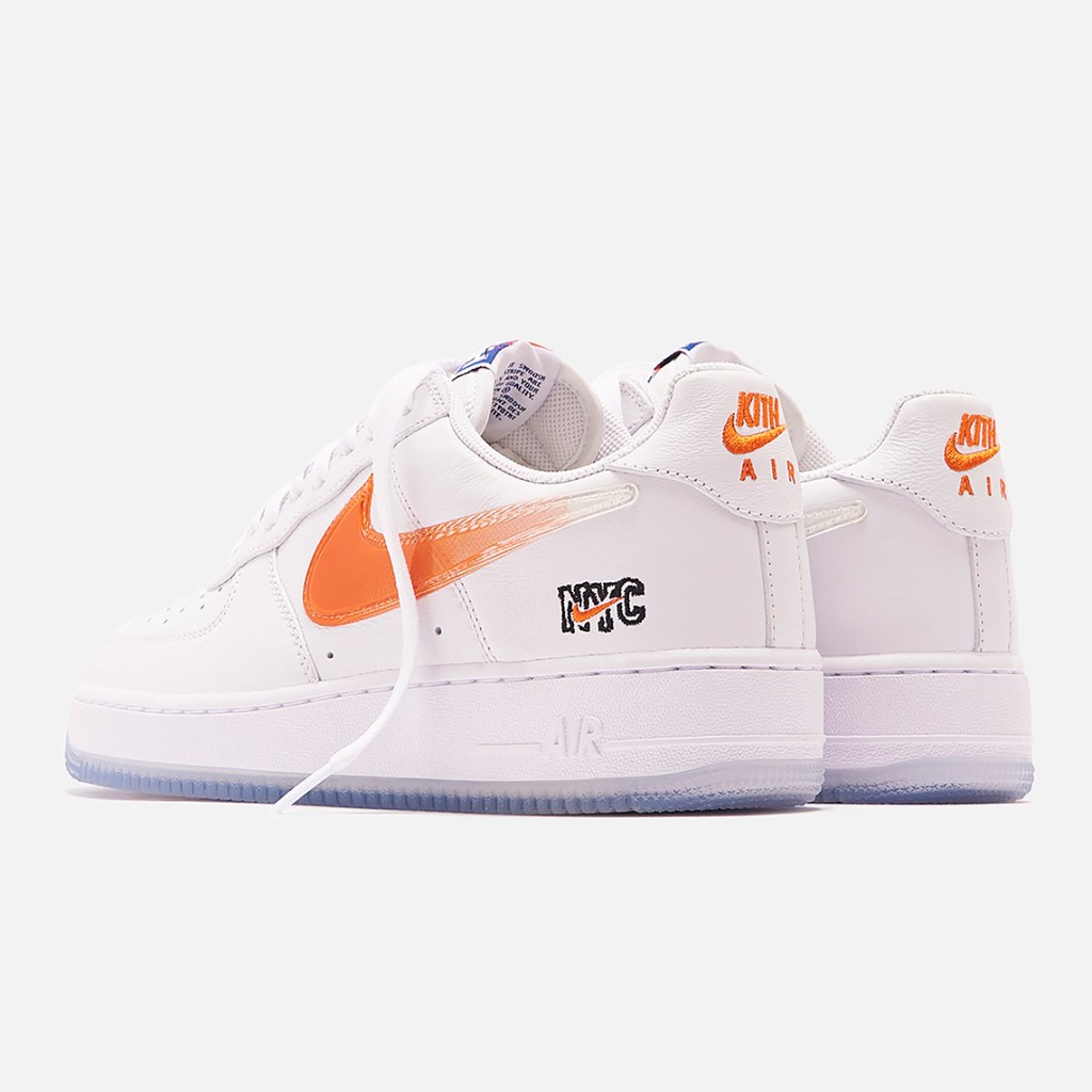NYC fashion brand KITH has had some great collaborations in the past and next up dropping today is next level. Kith will be dropping the New York staple Air Force 1 in Knicks themed colors. The kicks feature a White leather upper with Blue and Orange as well the kicks have subtle branding cues that make them pop. Retail is set at $130.00 dollars and they will sellout in minutes so don’t sleep.