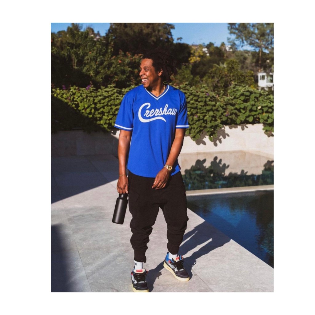 The pics surfaced via Jay Z long time producer Young Guru’s instagram of Jay pictured in the Air Jordan 4 Union kicks. The business mogul and rap GOAT also in the Crenshaw Nipsey Hussle blue pull over jersey. Check out the song “What it feels Like” that features the two legendary musical giants.