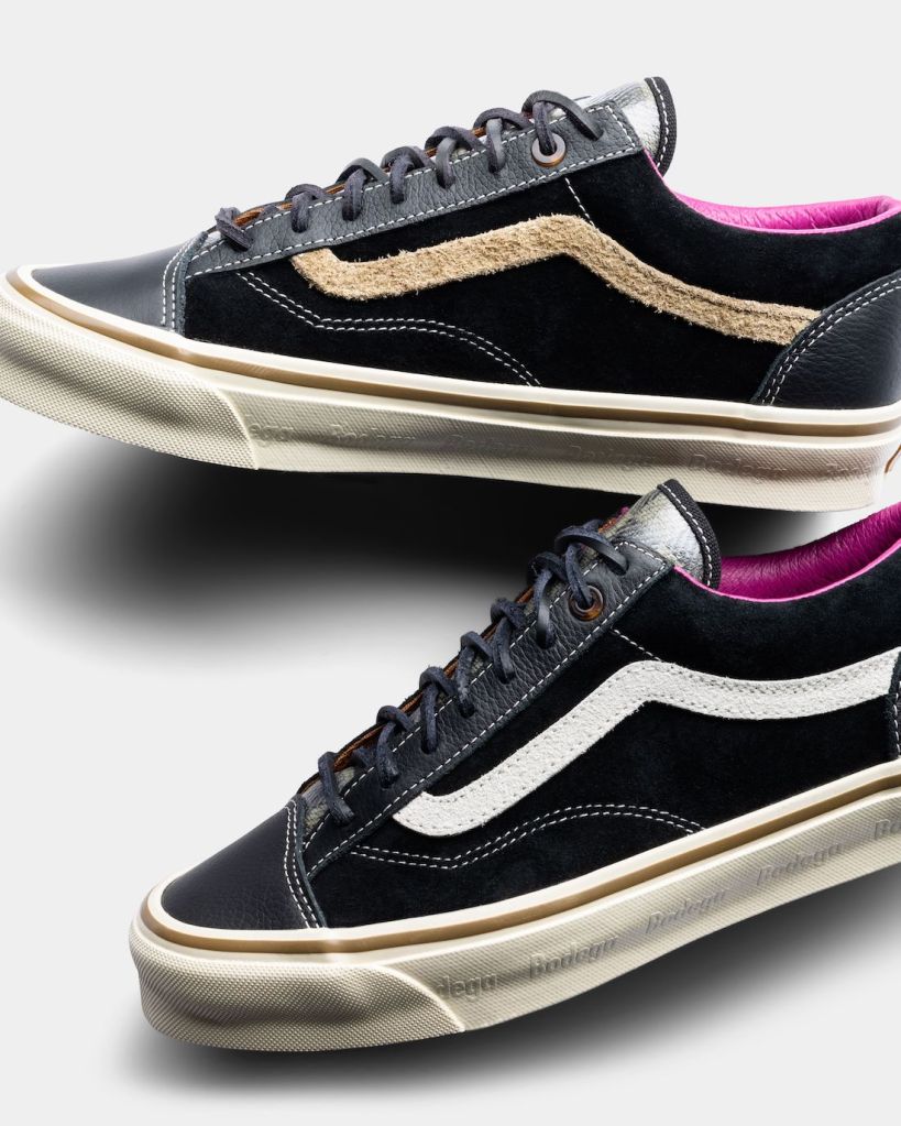 Vans and Boutique Bodega have linked up to collaborate on a Luxury version of it’s iconic sneaker. The kicks feature premium suede and leather on the uppers with a pink leather collar and snakeskin print on the tongue. There’s also BODEGA branding embossed on the mid-sole the laces are also leather look for these this coming April in store and online.
