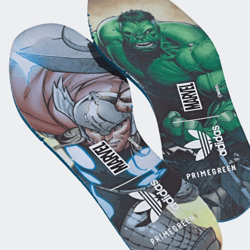 The timeless classic that is the Adidas Stan Smith model is back with a Marvel themed collaboration. The Black,Red and Green vibes featuring Hulk and Thor respectively with branding and more. The tongue features both characters and the insoles also have colorful graphics as well. Look for these in select retailers and online soon the ticket for these kicks are at $100.00 dollars.