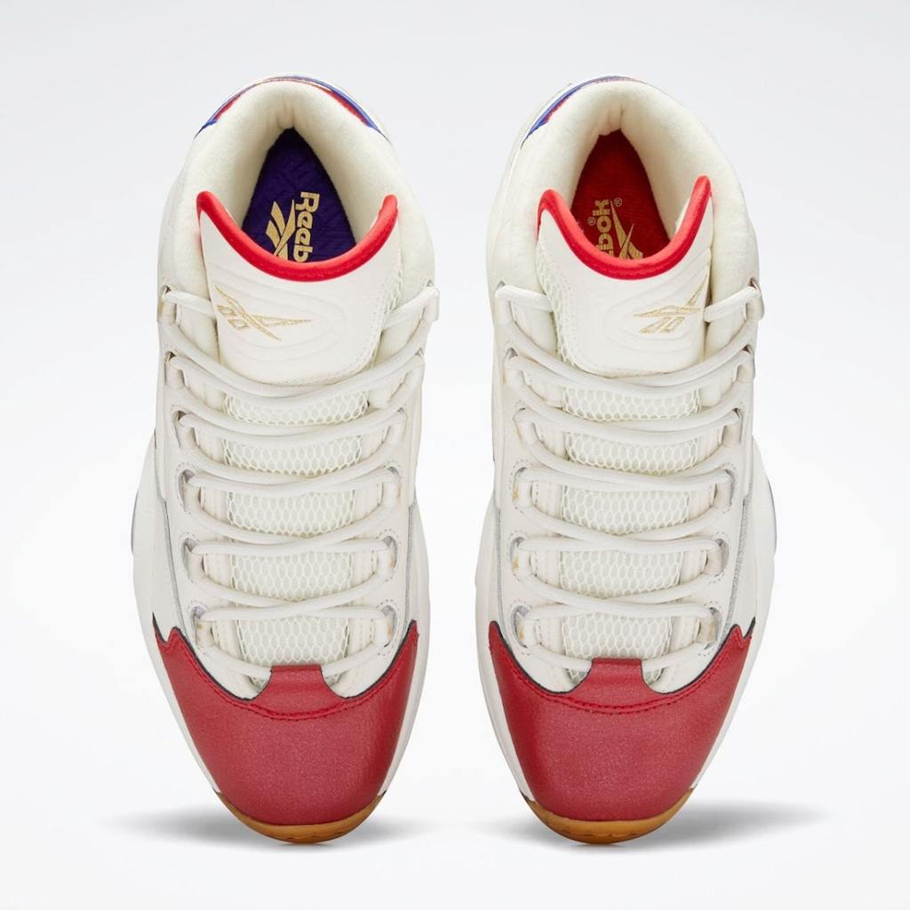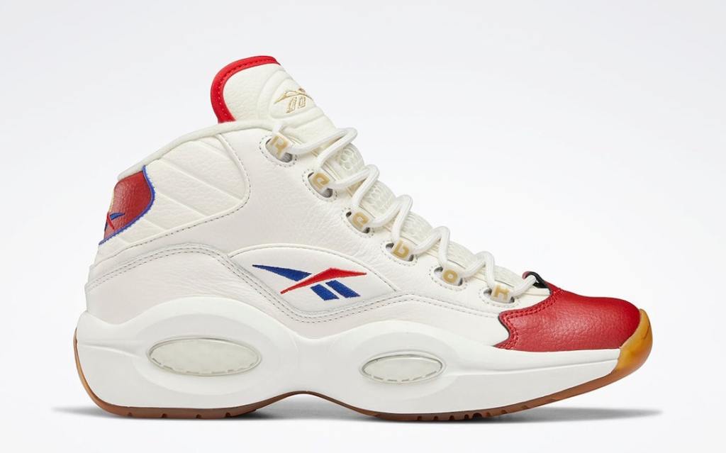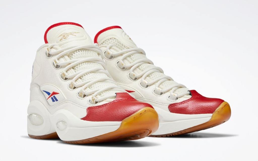 Paying homage to the 76’ers famous Jersey from their 97-98 season Reebok’s Question Mid aka Allen Iverson’s first signature kicks. The kicks feature a White upper with smooth and tumbled leather an aged yellow out-sole with Red,Blue and Gold accents. Look for these in the coming weeks to select retailers and online soon with an $140.00 dollar price tag.