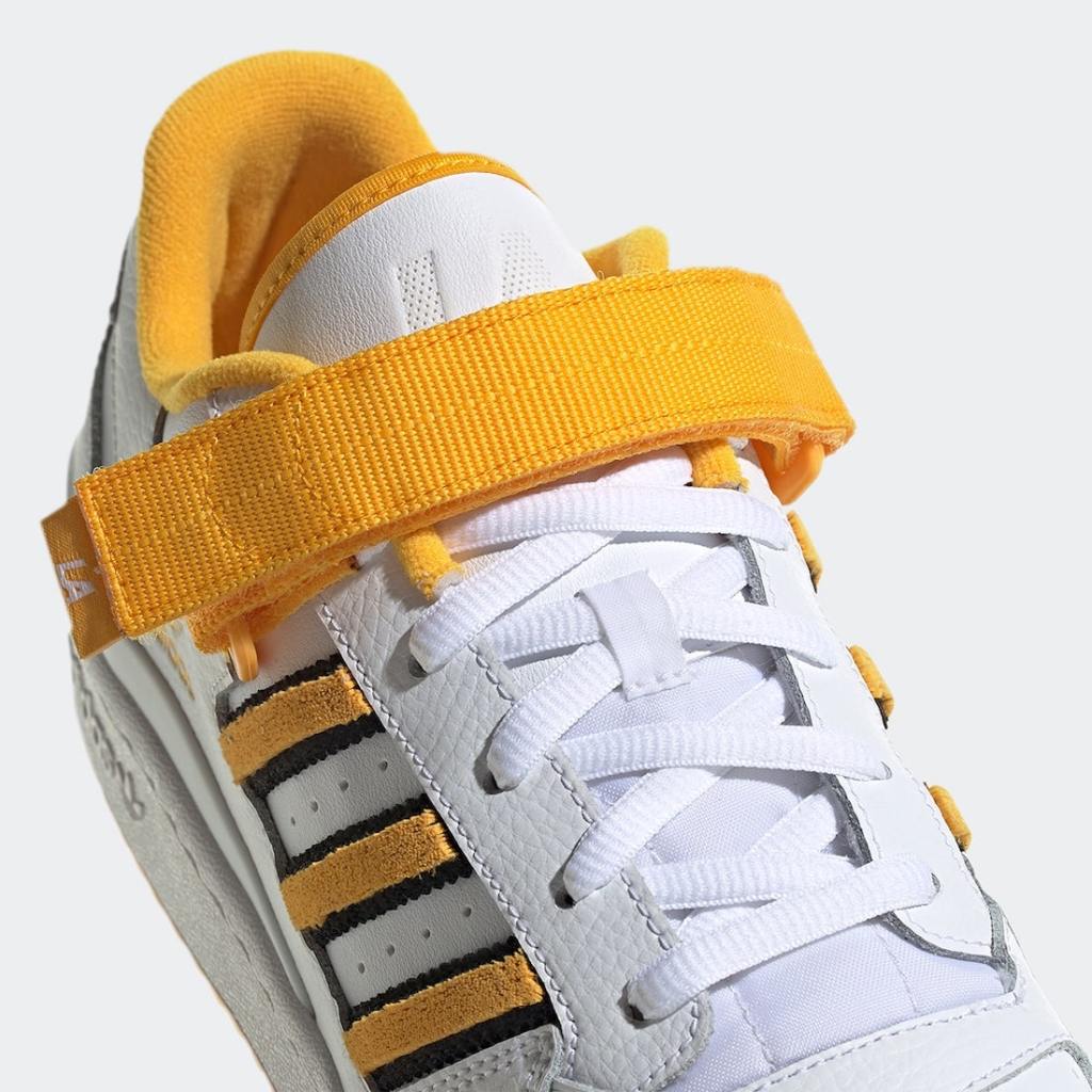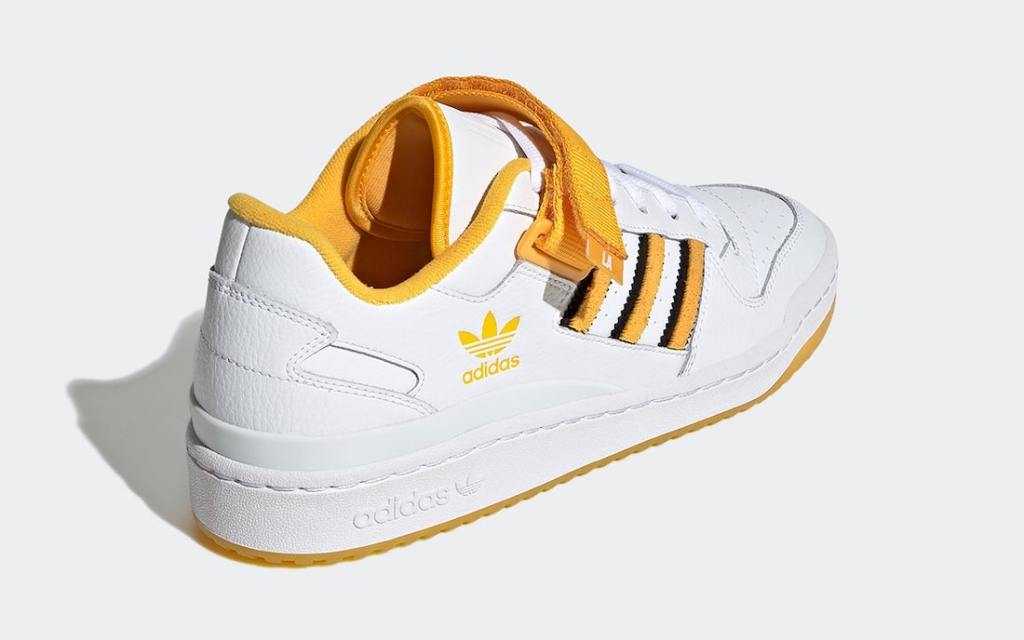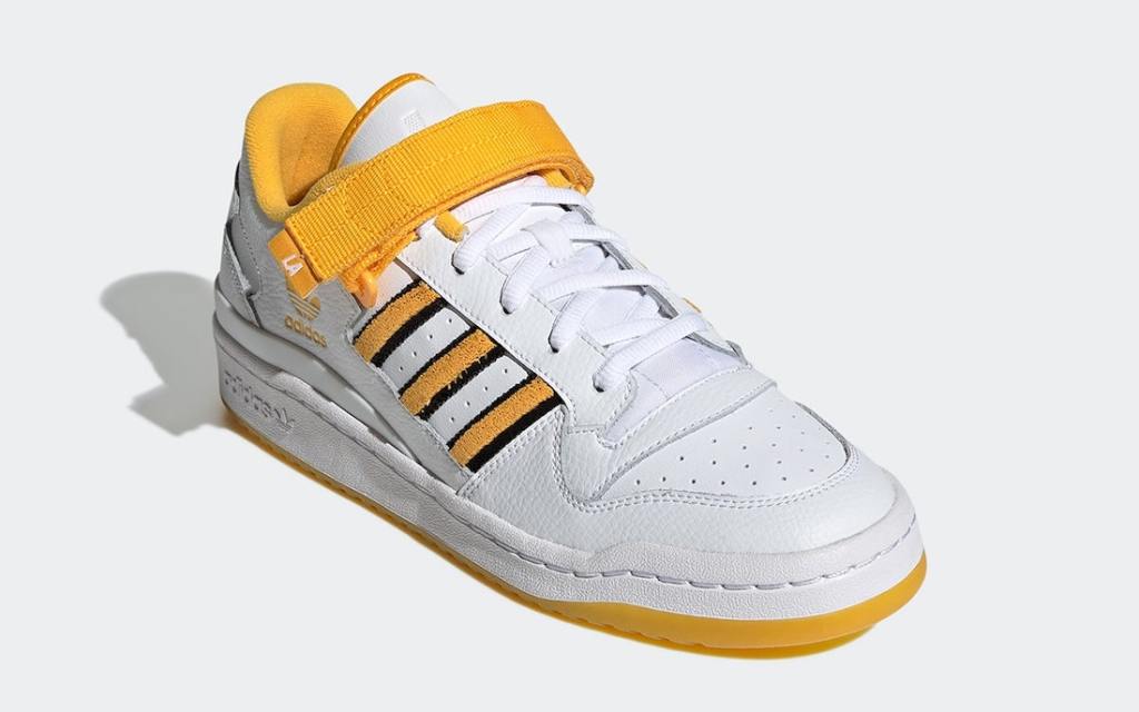The Adidas Forum gets a “Los Angeles” themed sneaker the kicks feature a nice grain of tumbled leather in white on the upper. The accented colors are a navy and yellow there’s also subtle LA markings on the kicks from the strap to the tongue grab a pair now at select retailers and online for just $95.00 dollars.