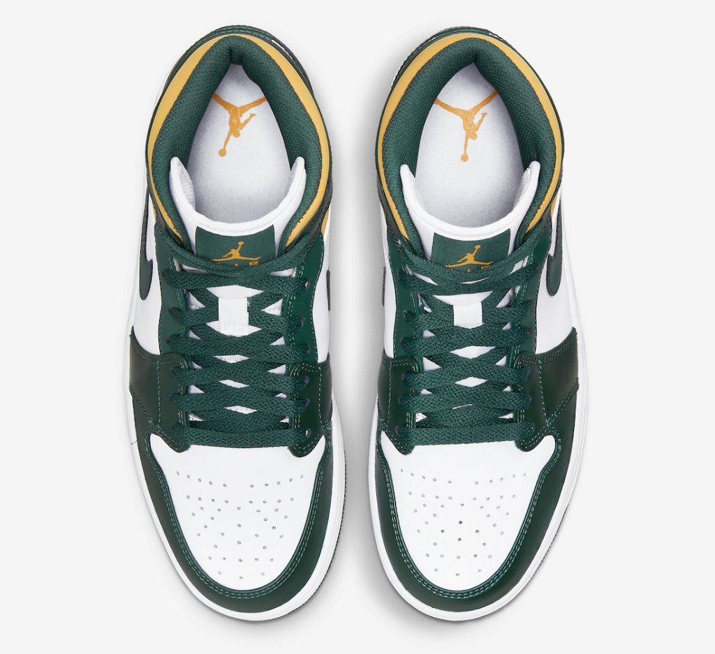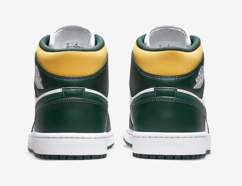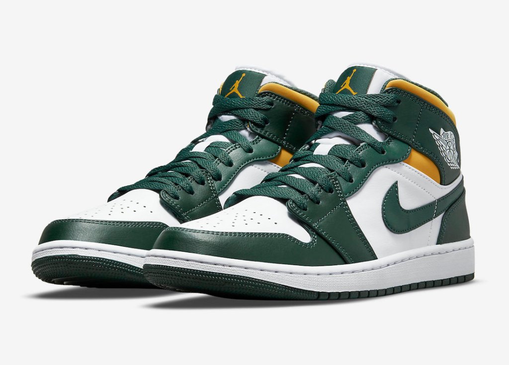 The Air Jordan 1 mid’s will be dropping this season in a classic NBA teams color way the Green-Yellow and White. The themed kicks are of the iconic Seattle Supersonics colors retail on these is set at $120.00 dollars.