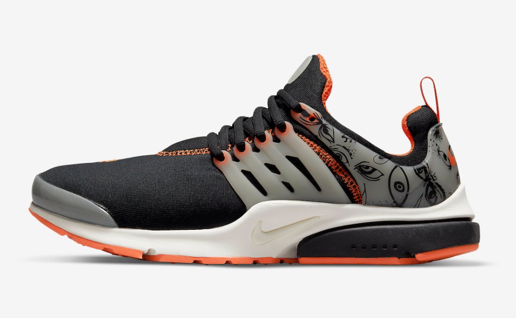 The classic lifestyle runner the Nike Presto is getting it’s version of “Halloween” the kicks feature the usual Black,Orange and Sail color scheme with some extras. There’s some spooky vibes throughout from the translucent heal counter with evil eyes and spiders are on the insoles on the roe box area. Look for these to hit select retailers and online on October the 29th for $130.00 dollars.