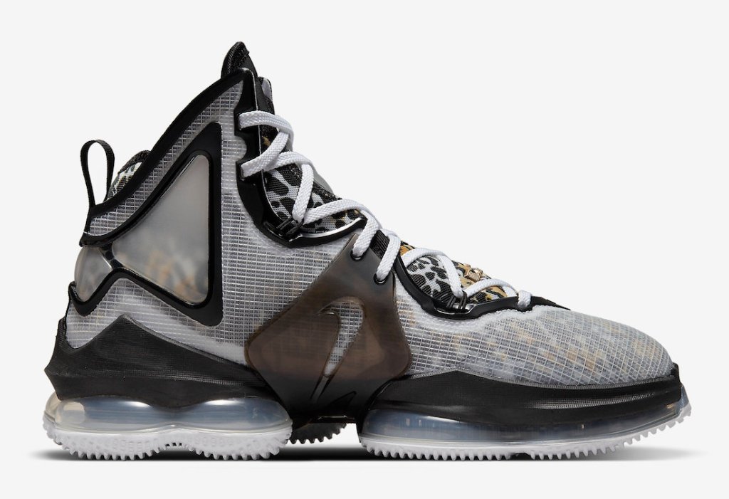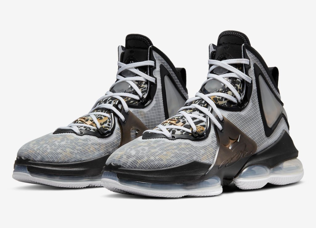 The LeBron James 19 signature kicks have a “Leopard” vibe coming to select retailers and online soon. The kicks feature a nice leopard print underlay on the sock liner and the Gold accents are nice as well. The retail is set at $200.00 dollars and look for these early 2022.
