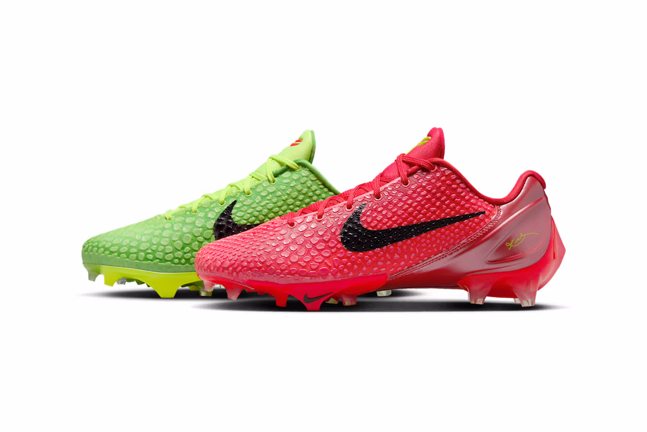 Hitting select Nike retailers this Christmas week the Kobe 6 in the Nike Vapor Edge cleat in the “Mismatch Grinch” theme. The kicks will retail for $250.00 and are a must have for the season and the player that wants to standout on the field. Hit the like and subscribe button to stay tapped in for more content.