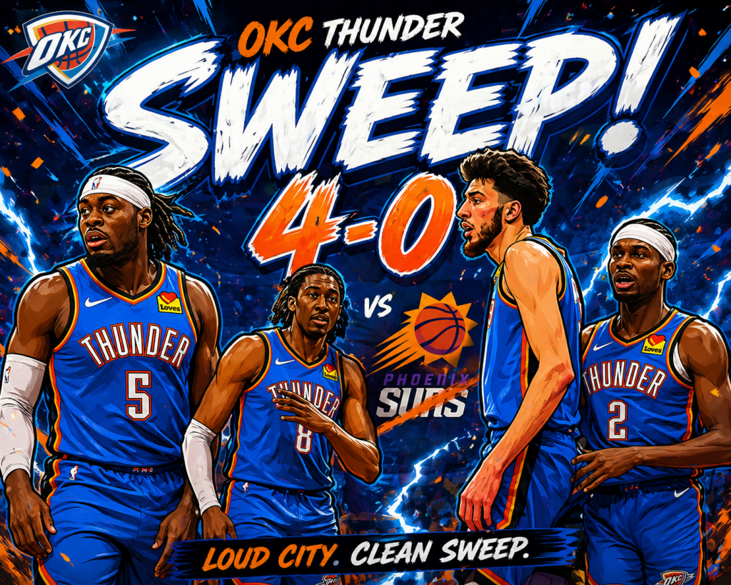 The OKC Thunder pull off the sweep of the Phoenix Suns and are now able to rest up and get ready for the second round of the NBA playoffs. Lead by Shai Gilgeous-Alexander who had 31 points in 38 minutes the Thunder will play the winner of the Lakers,Rockets series. Hit the like and subscribe button to stay tapped in for more content.